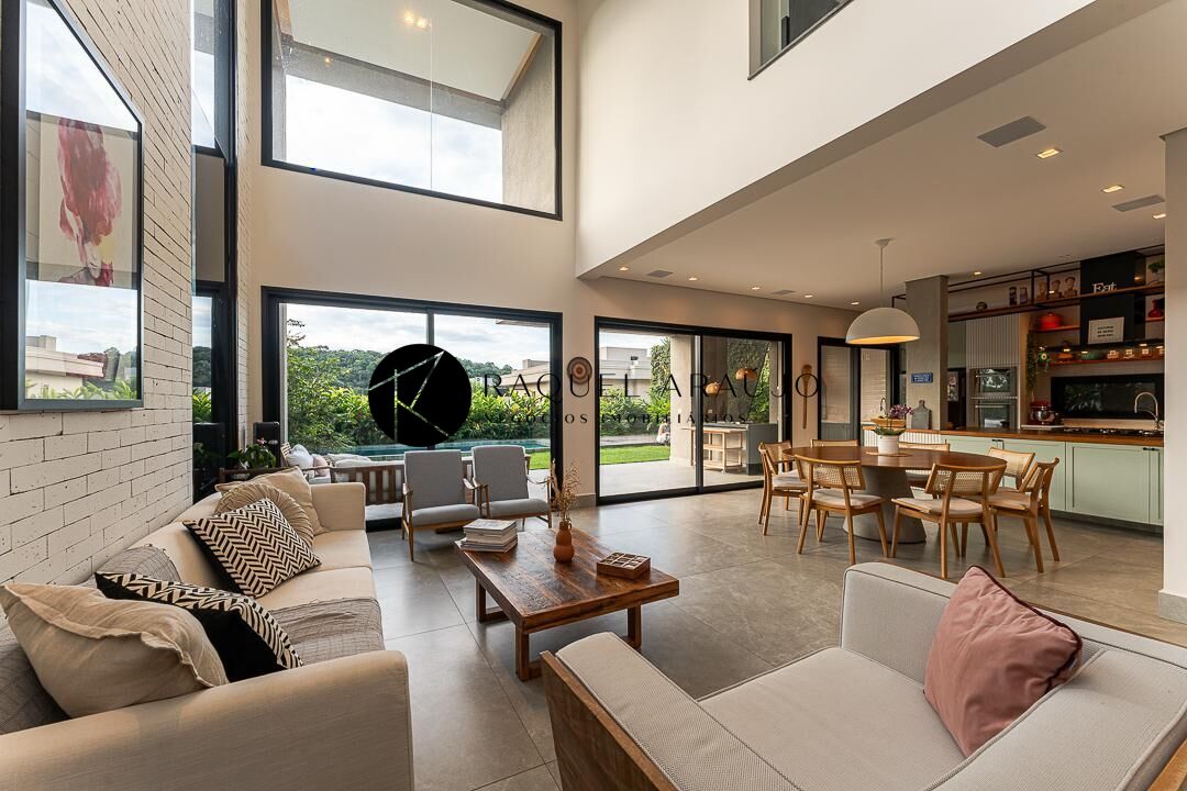 A área social é integrada e voltada para a área externa, que conta com piscina aquecida, perfeita para momentos de lazer durante todo o ano. A casa possui ainda energia fotovoltaica, trazendo eficiência energética e economia.